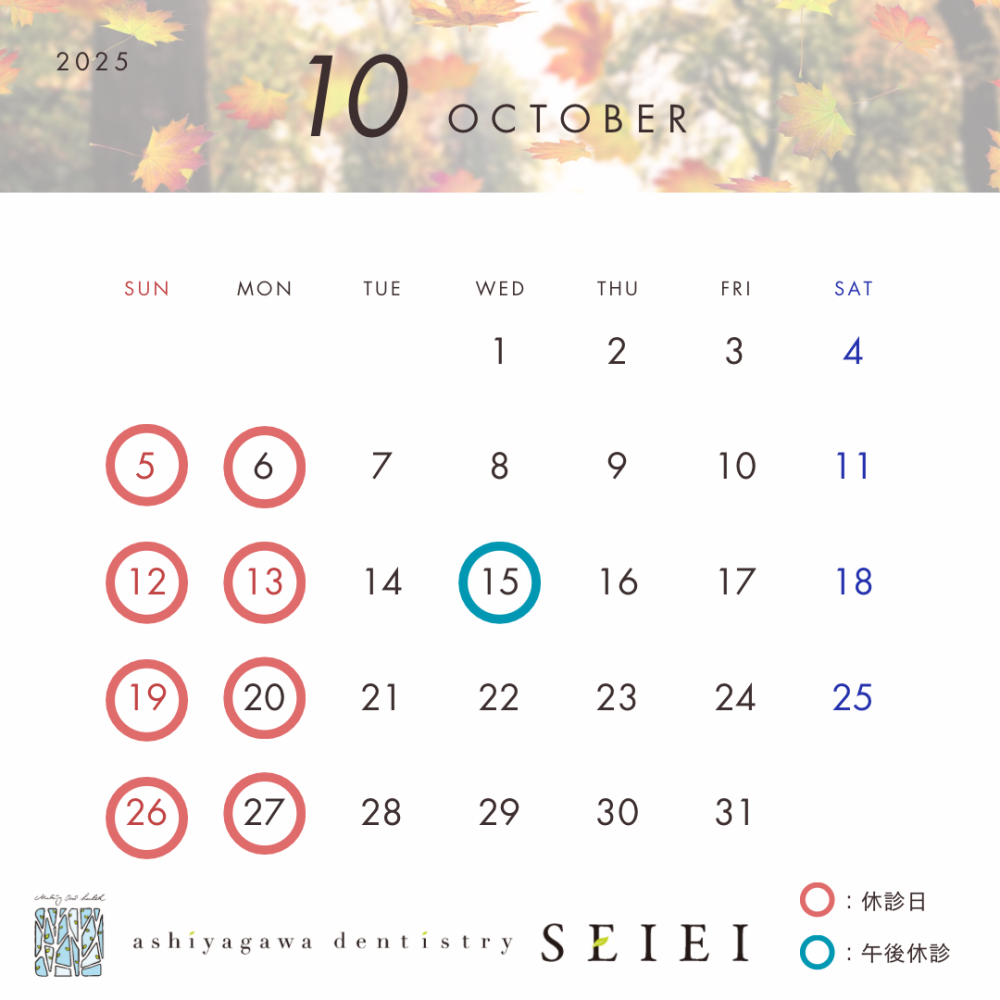 10月8日(土)、10月19日(水)は午後から休診とさせて頂きます。